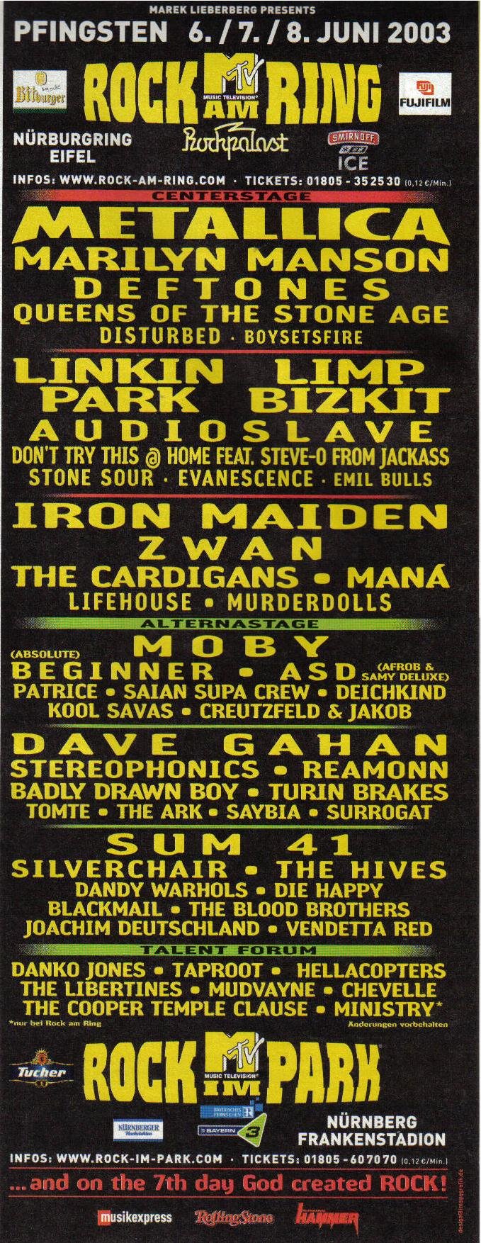 Rock Am Ring 2003 At Nurburgring Nurburg On 6 Jun 2003 Last Fm